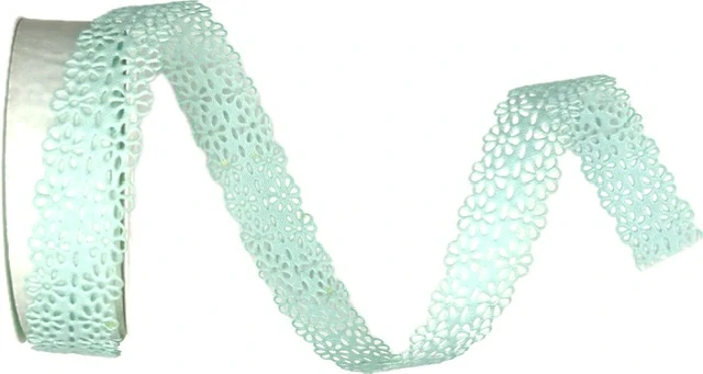 Pastelově modrá barva a optická struktura připomínající ručně paličkovanou krajku působí jemně romanticky a zároveň nadčasově. Stuha je vysekávána s velkou přesností, oboustranná a díky kvalitnímu materiálu překvapivě pevná – nelze ji snadno přetrhnout. Díky své struktuře krásně drží tvar a skvěle se kombinuje s látkovými nebo organzovými stuhami.