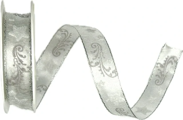 Vánoční stuha organzová GLITTER STAR SILVER 10mm x 2m (9,- Kč/m)Skladem 16 ks18 Kč/ ks15 Kč bez DPH