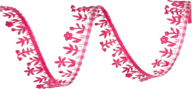 Blossom Lace – Pink Edition je kvalitní girlandová stuha od německého výrobce, která zaujme nejen svou sytě růžovou barvou, ale především detailním květinovým motivem. Vysekávaný vzor květin v kombinaci s jemným leskem stuhy vytváří luxusní a přitom hravý dojem. Díky oboustrannému provedení je použitelná z obou stran a skvěle se hodí ke kombinaci s látkovými nebo organzovými stuhami.