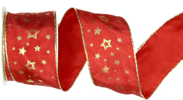 Luxusní červená látková stuha se zlatým hvězdným dekorem pro slavnostní a reprezentativní výzdobu. Vyrobena z kvalitního saténu, působí elegantně a zářivě. Díky jemnému, ale pevnému vetkanému drátku v okrajích si snadno udrží svůj tvar, což z ní dělá ideální volbu pro tvorbu bohatých mašlí nebo originálních aranžmá. Oboulící provedení s jednostranným potiskem zajišťuje krásný vzhled z každého úhlu.
