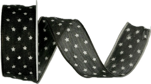 - Stuha vánoční bavlněná TINY STARS BLACK černá 25mm x 2m (9,-Kč/m)