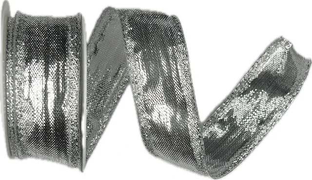 Stuha stříbrná lurexová BIRMINGHAM SILVER lesklá 25mm x 2m (14,-Kč/m)