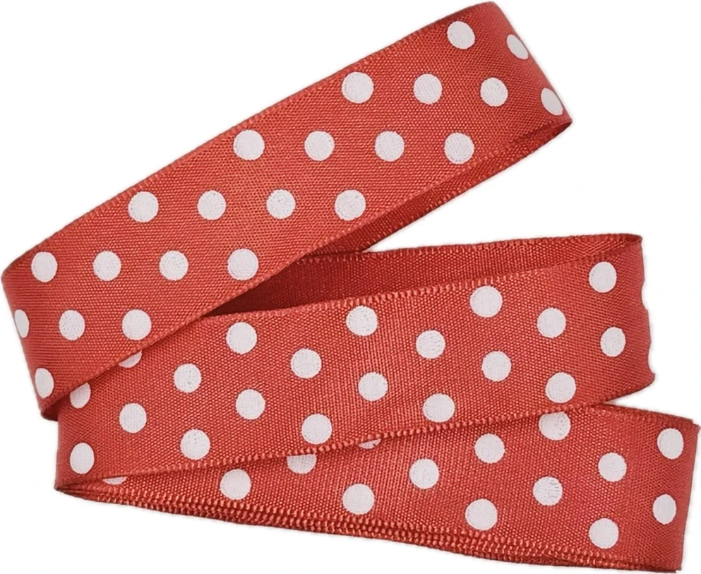 Taftová stuha HOT SPOT Cherry Red v sytě červeném odstínu je výrazná, hravá a nepřehlédnutelná. Kontrastní bílé puntíky dodávají stuze lehce retro nádech, který krásně vynikne při slavnostních i tematických dekoracích – od Vánoc přes Valentýna až po narozeninové oslavy.
