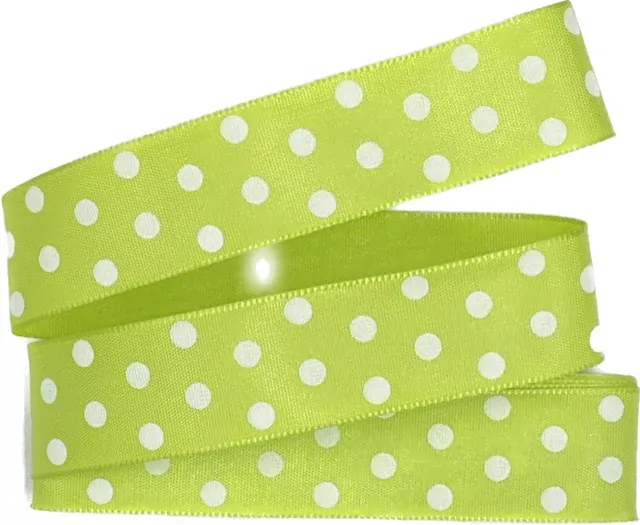 Taftová stuha HOT SPOT Pea Green v krásném hráškově zeleném odstínu působí svěže, hravě a zároveň elegantně. Jemný jednostranný potisk bílých puntíků dodává stuze lehce retro charakter, který se skvěle hodí pro jarní a letní dekorace, dětské oslavy i kreativní tvoření.