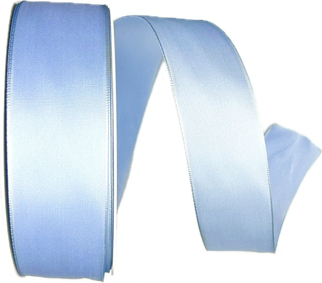 Kvalitní taftová stuha v odstínu světle modré, 4 cm široká, v obou okrajích vetkán tenký drátek.