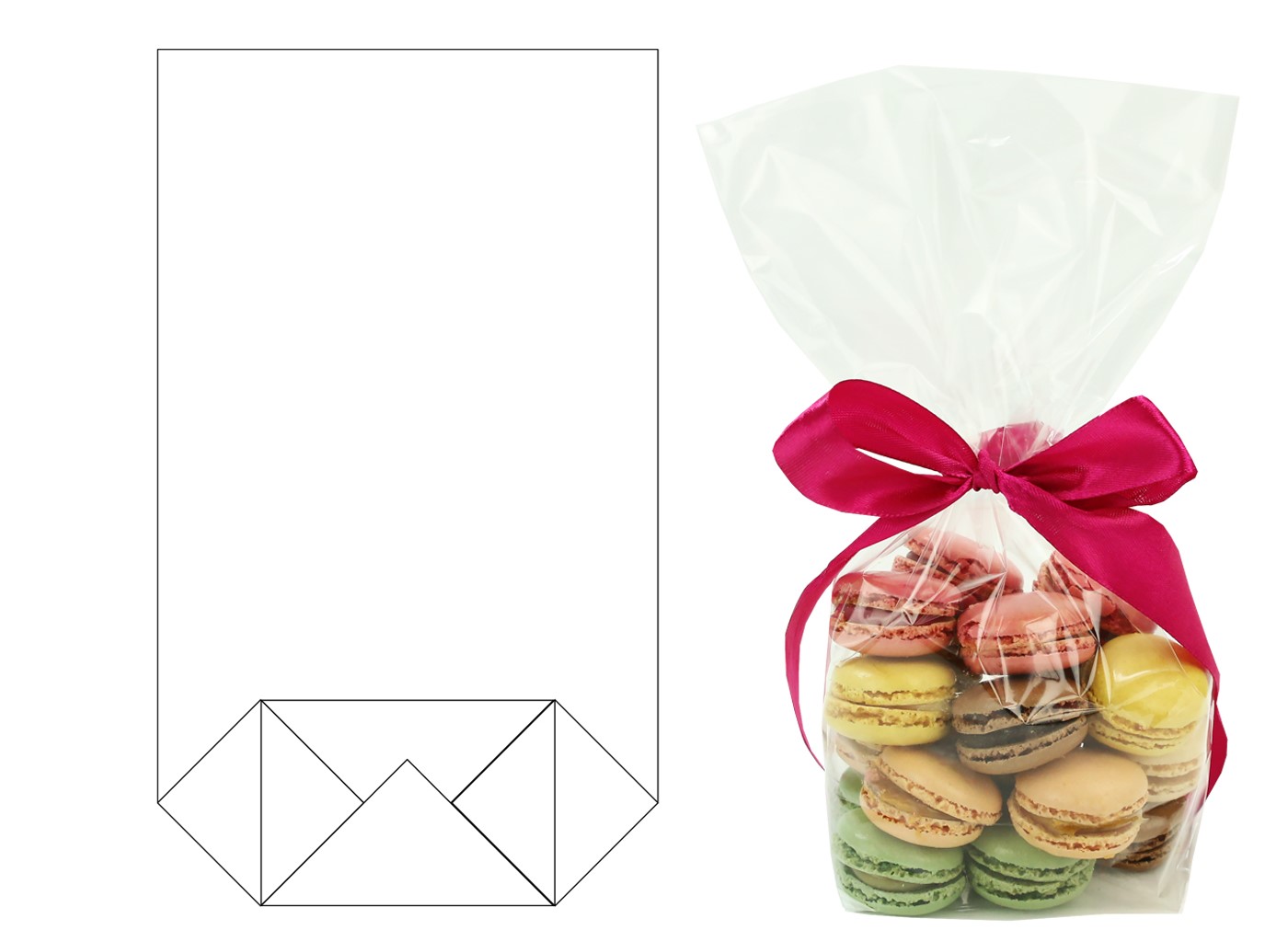 Průhledné celofánové sáčky s křížovým dnem vhodné na výrobu dárkovách balení.