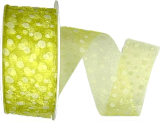 Stuha organzová SPOTS GREEN transparentní, světle zelená A 40mm x 20m (9,-Kč/m)