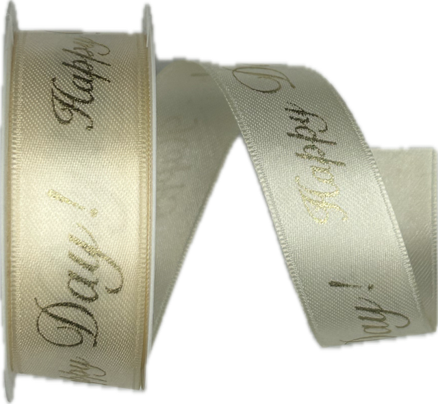 Saténová stuha HAPPY DAY! krémová 25mm x 2mSkladem 6 ks27 Kč/ ks22 Kč bez DPH