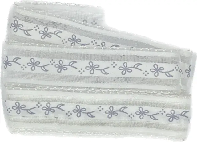- organzová průsvitná stuha s šedým potiskem, s motivem květin