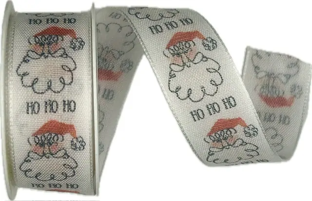 Vánoční látková stuha v barvě bílé, s jednostranným potiskem, s motivem Santa. Stuha má oba...