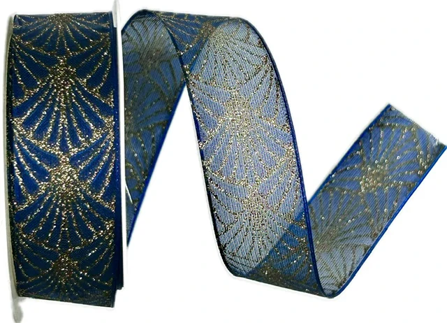 Stuha vánoční organzová GLAMOUR FESTIVAL NAVY BLUE 25mm x 2m (13,-Kč/m)