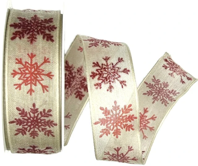 Elegantní vánoční stuha v decentní šedé barvě s jemným potiskem červených sněhových vloček. Spojení těchto tónů vytváří vkusný a moderní dojem – ideální pro vánoční balení v severském nebo přírodním stylu.