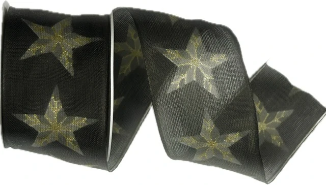 Vánoční stuha NATURAL STAR BLACK černá 40mm x 2m (13,-Kč/m)