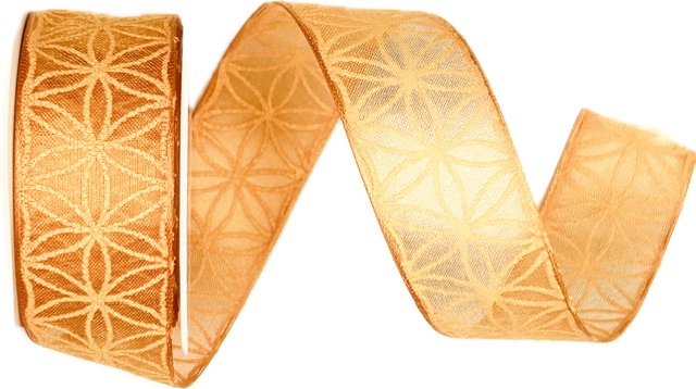 Teplá oranžová varianta stuhy Rhodos evokuje podzimní světlo, středomořskou krajinu i rustikální eleganci. Průsvitný taftový materiál propouští světlo a vytváří jemný lesk, zatímco geometrický vzor v bílé barvě přináší strukturu a vizuální zajímavost. Vetkaný vlasec v lemu dodává stuze stabilitu a umožňuje vytvářet výrazné mašle, které dobře drží tvar.