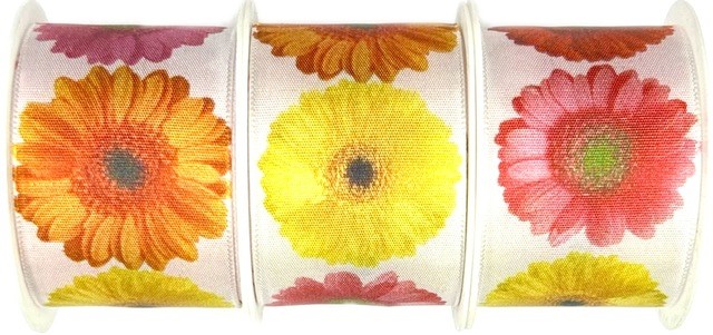 Set 3x Stuha taftová GERBERA YELLOW fotopotisk Gerbera 3x (40mm x 2m)Skladem 105 ks60 Kč/ ks50 Kč bez DPH