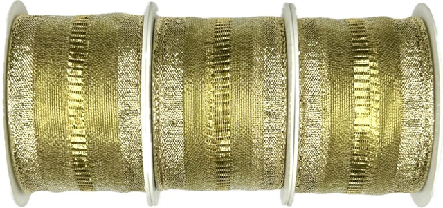 3x Stuha zlatá OUTDOOR GOLD LINE lurexová průsvitná 3x (40mm x 2m)