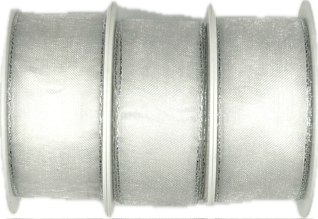 3x Stuha taftová BASIC WHITE SILVER bílá 3x (25mm x 3m)