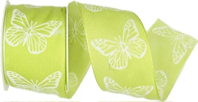 Stuha látková SWEET BUTTERFLY GREEN hráškově zelená 40mm x 2m (13,-Kč/m)