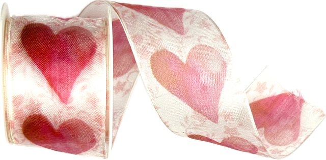 Okouzlující taftová stuha v jemně růžovém tónu s malovaným akvarelovým potiskem srdcí v odstínech malinové, červené a pudrové růžové. Každé srdíčko působí jako ručně namalované, a v kombinaci s nenápadnými květinovými motivy vzniká dojem něhy, romantiky a hravosti.