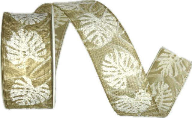 - Stuha taftová MONSTERA NATUR béžová 25mm x 2,5m (10,-Kč/m)