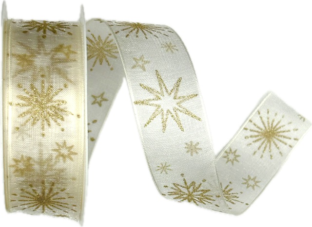 Stuha vánoční STARLIGHT SNOW WHITE bílá 25mm x 2m (14,-Kč/m)