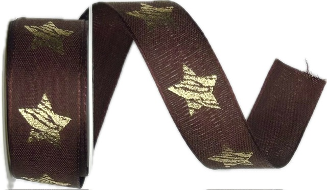 Stuha vánoční RUSTIC STAR BROWN hnědá 25mm x 2m (12,-Kč/m)