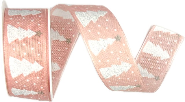 Jemná taftová stuha v moderním odstínu pudrově růžové, zdobená stříbrnými třpytivými vánočními stromky a sněhovými vločkami. Elegantní glitrový potisk dodává stuze slavnostní nádech a jemně se třpytí při každém pohybu. Vetkaný silonový vlasec v lemech zajišťuje skvělou tvarovou stabilitu – stuha se nekroutí a výborně drží při tvorbě mašlí i dekorací.