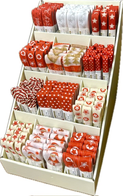 Luxusní kolekce vánočních stuh pečlivě sladěných do tradičních barevných tónů červené, bílé a zlaté. Set obsahuje široký výběr motivů – od jemných hvězdiček, veselých vánočních ozdob a třpytivých detailů až po elegantní jednobarevné varianty.