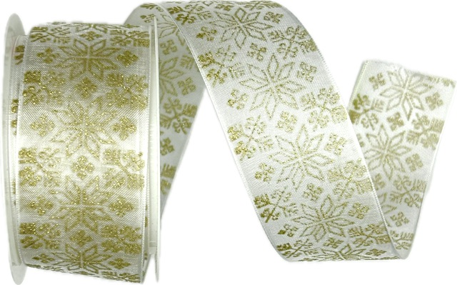 Vánoční stuha organzová GLAMOUR FLOWERS GOLD bílá 40mm x 2m (16,-Kč/m)Skladem 28 ks32 Kč/ ks26 Kč bez DPH