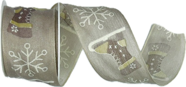 Stuha vánoční WINTER SKATE hnědá 40mm x 2m (13,-Kč/m)
