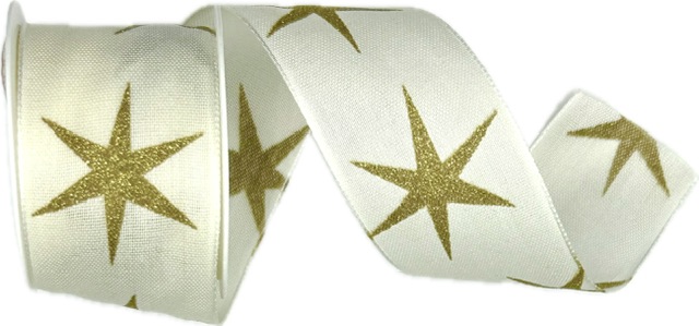 Stuha vánoční bavlněná SHOOTING STAR GOLD krémová 40mm x 2m (14,-Kč/m)