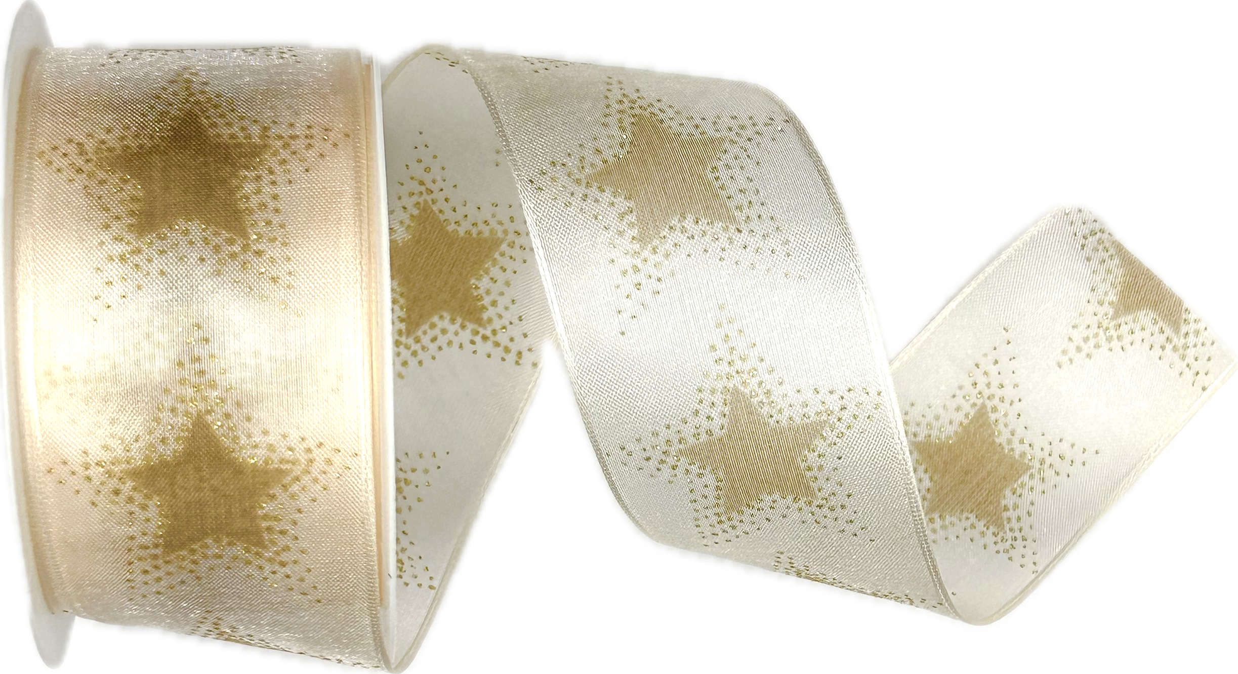 Zlatá organzová stuha je symbolem luxusu a bohatství. Její průsvitný základ působí lehce a vzdušně, zatímco hvězdný motiv přináší do každé dekorace efekt zářivého „hvězdného prachu“. Okraje zpevněné jemným vlascem zajistí, že stuha drží tvar a snadno se s ní vytváří velké mašle nebo slavnostní aranžmá.