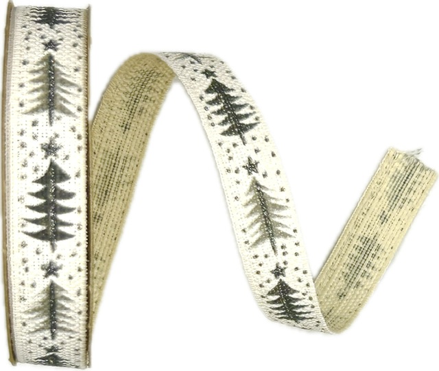 - Stuha vánoční lněná SIMPLE FROSTED TREES WHITE bílá 15mm x 3m (10,-Kč/m)