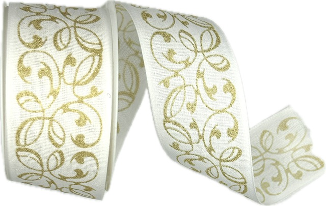 Stuha vánoční GOLDEN ELEGANCE SCROLL bílá 40mm x 2m (14,-Kč/m)