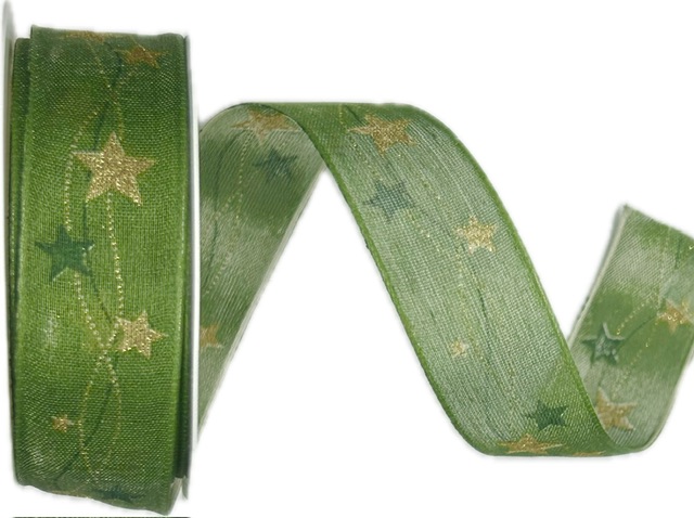 - Stuha vánoční CELESTIAL GLOW GREEN zelená 25mm x 2m (13,-Kč/m)