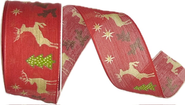 Stuha vánoční GOLDEN REINDEER FOREST červená 40mm x 2m (14,-Kč/m)