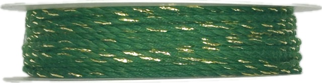 Elegantní dekorační provázek v zeleném odstínu, propletený třpytivou zlatou nití. Vyrobený z kvalitní bavlny, má průměr 1 mm a délku 5 m. Díky své jemnosti a decentnímu lesku je ideální pro sváteční i celoroční dekorace.