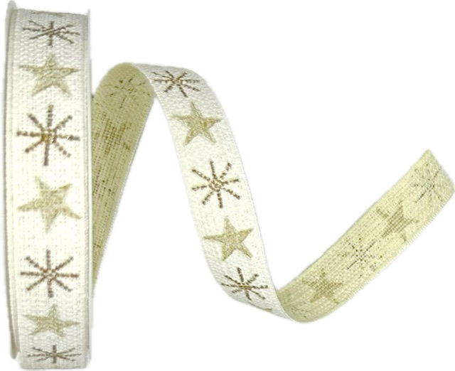 Stuha vánoční lněná NORDIC LINEN STARS NATURAL GOLD bílá 15mm x 4m (8,-Kč/m)