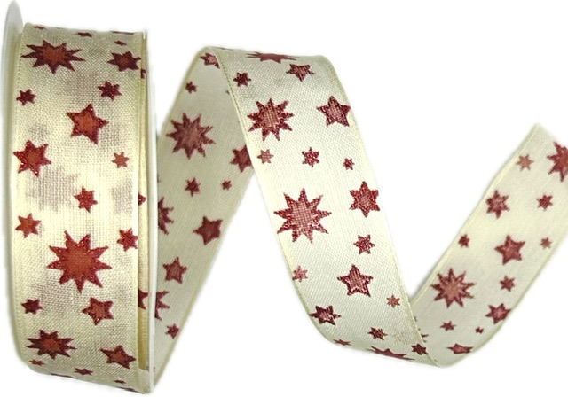 Stuha vánoční STARRY CHARM RED GLOW krémová 25mm x 3m (10,-Kč/m)