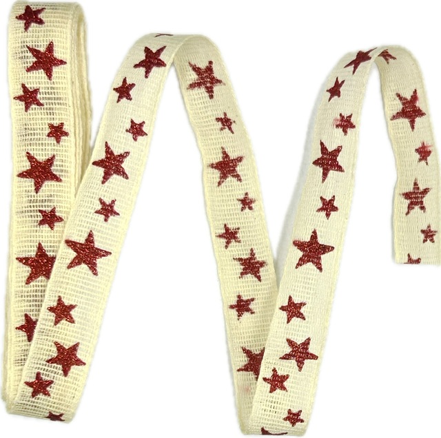 - Stuha vánoční lněná STAR GLOW CREAM krémová 15mm x 3,5m (6,- Kč/m)