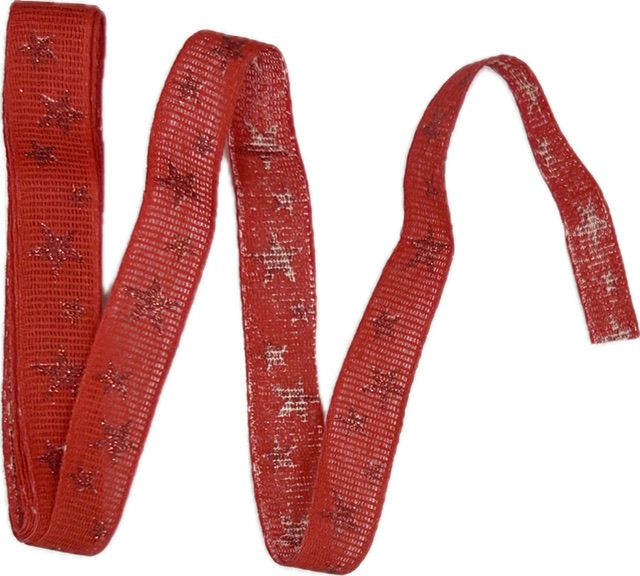 - Stuha vánoční lněná STAR GLOW RUBY RED červená 15mm x 2m (9,- Kč/m)