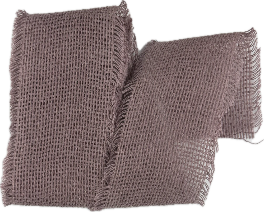 Tkaný materiál s přirozeně rustikální strukturou připomínající jutu je měkký, poddajný a snadno tvarovatelný. Stuha dobře drží mašle a jemně třásnité okraje dodávají dekoracím autentický, ručně vyráběný vzhled.