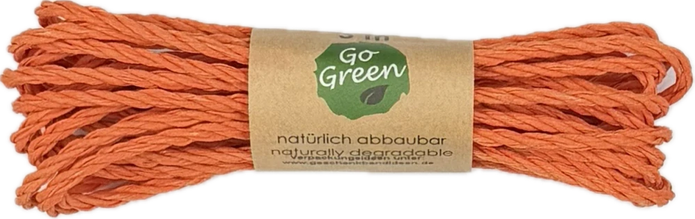 Řada Go Green je zaměřena na udržitelnost – provázky jsou biologicky odbouratelné a ideální pro ekologické balení i přírodní dekorace bez zbytečné zátěže pro životní prostředí. Odstín Warm Orange se krásně kombinuje s přírodní, krémovou, hořčicovou, zelenou i červenou barvou.