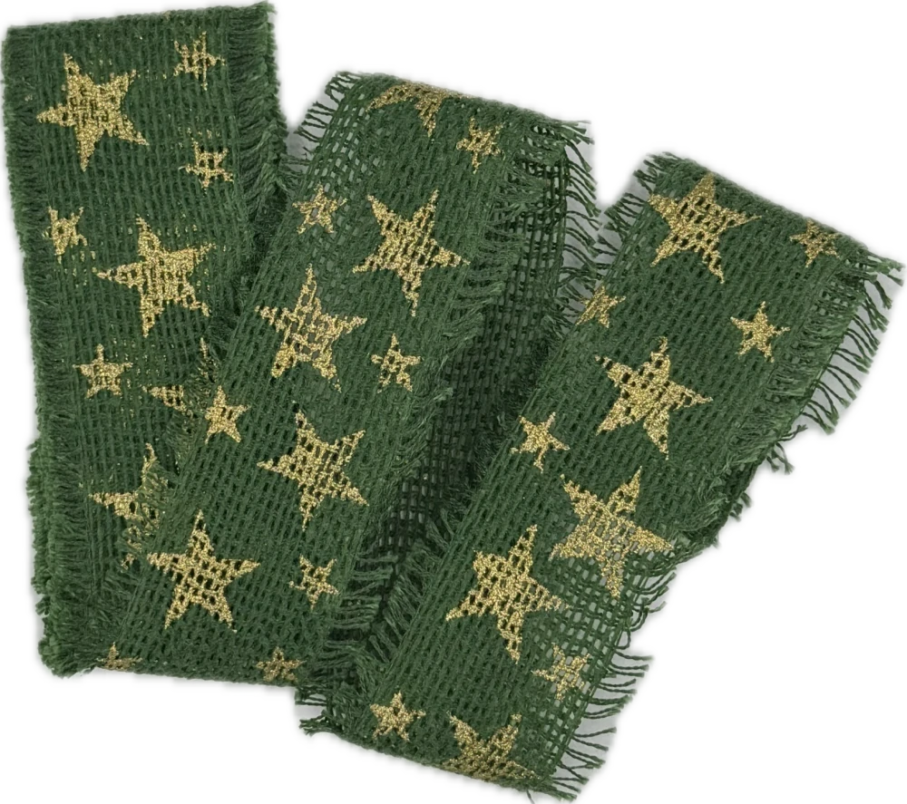 Stuha Juta Starshine Forest Green v sytém zeleném odstínu působí elegantně, přírodně a zároveň svátečně. Zlaté hvězdy s jemným glitrovým efektem ✨ krásně kontrastují s tmavě zeleným podkladem a dodávají stuze luxusní vánoční charakter inspirovaný lesem, jehličím a tradičními Vánocemi.