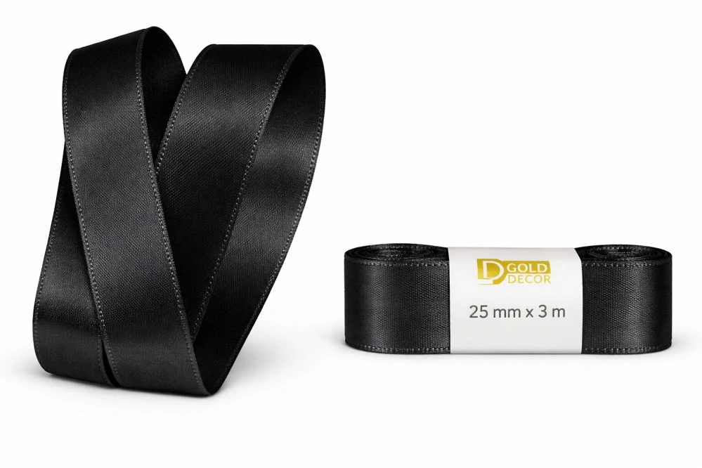 Stuha taftová Deep Black černá 25mm x 3m (7,-Kč/m)Skladem 49 ks21 Kč/ ks17 Kč bez DPH