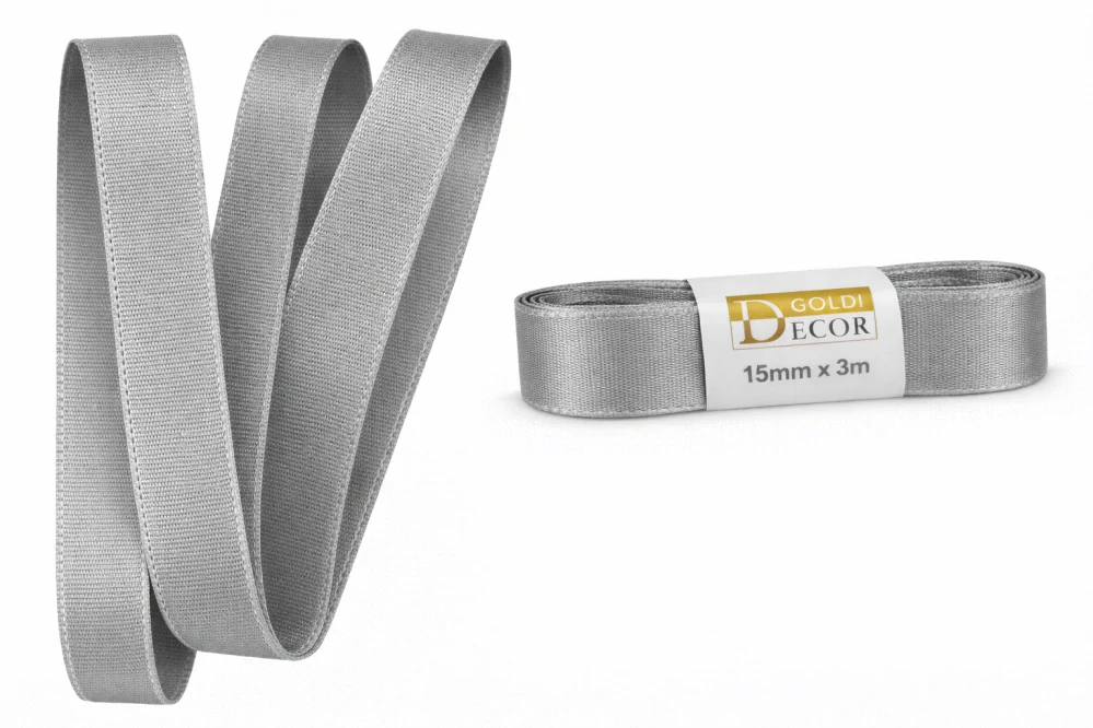 - Saténová stuha GRANITE GREY – elegantní matně lesklý satén 15 mm x 3 m