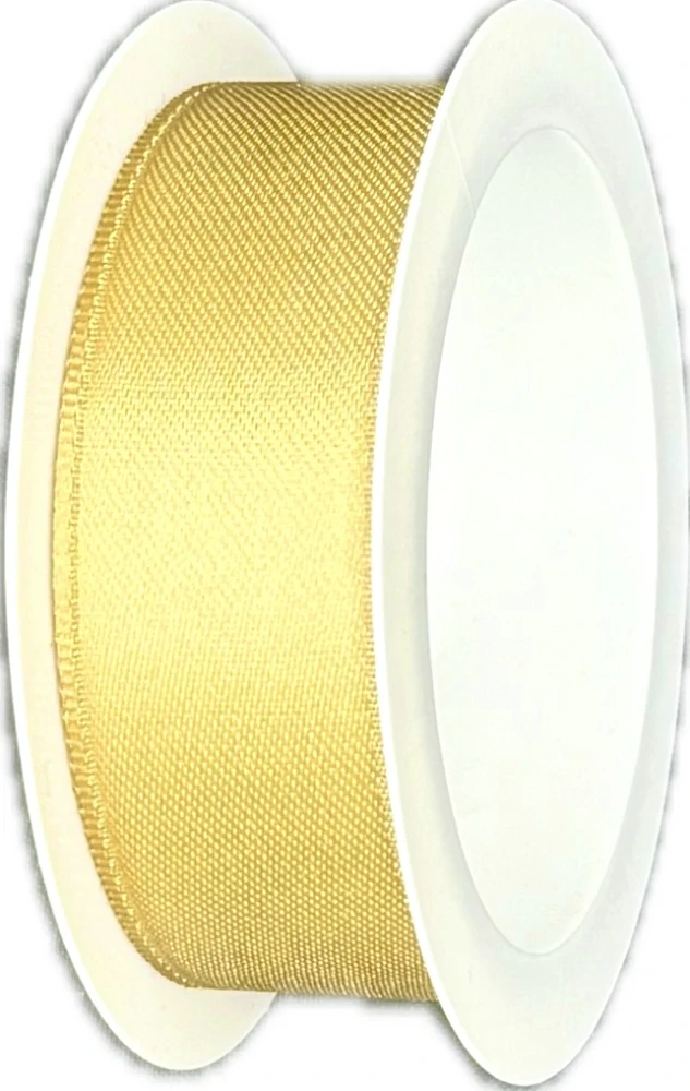 šířka: 25 mm délka: 3 m materiál: satén provedení: oboustranný okraje: zesílené tkaním barva: medově zlatá (Honey Gold) výrobce: Německo