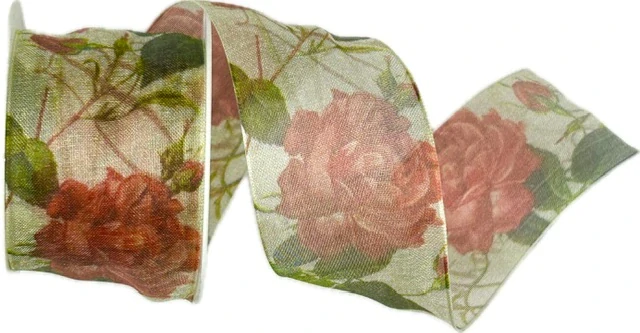 - luxusní organzová stuha s jemným potiskem s motivem růží