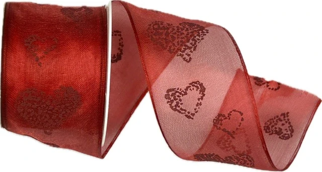 Výrazná organzová stuha DREAM v sytě červené barvě s plastickým potiskem srdcí v tónu červené působí elegantně, romanticky a velmi sofistikovaně. Jemný tón v tónu efekt dodává stuze hloubku a luxusní vzhled, který je ideální pro svatební i valentýnské dekorace.