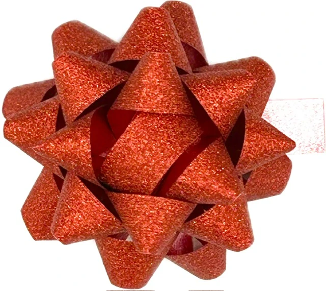 Rozeta dárková GLAMOUR červená glitrová 5cmSkladem 215 ks8 Kč/ ks6 Kč bez DPH